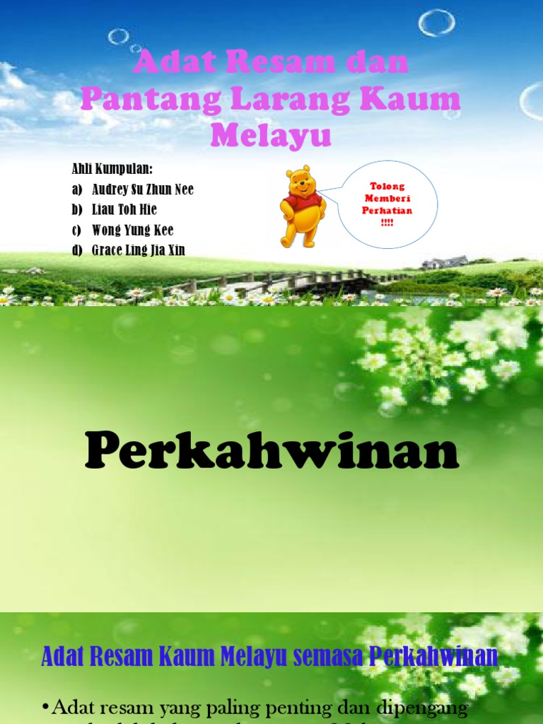 Adat resam kahwin Melayu antara adat resam yang paling penting dan dipegang teguh oleh kebanyakan orang Melayu baik di kawasan luar bandar mahupun di bandarSebagaimana mana-mana kaum ia memerlukan perbelanjaan yang agak besar dan terdapat segolongan yang ini. Suku Dayak ˈ d aɪ. Sulawesi Selatan disingkat Sulsel Lontara.